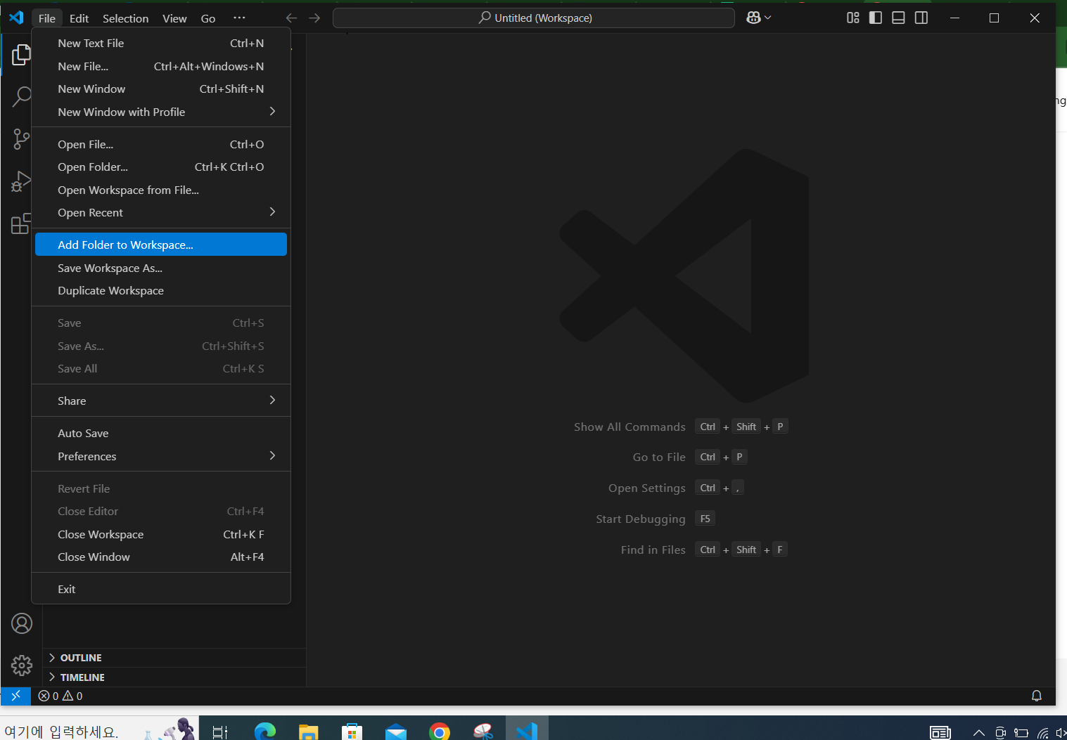 상단 탭 File - Add Folder to Workspace를 클릭하여 생성한 web_class 폴더를 불러옵니다