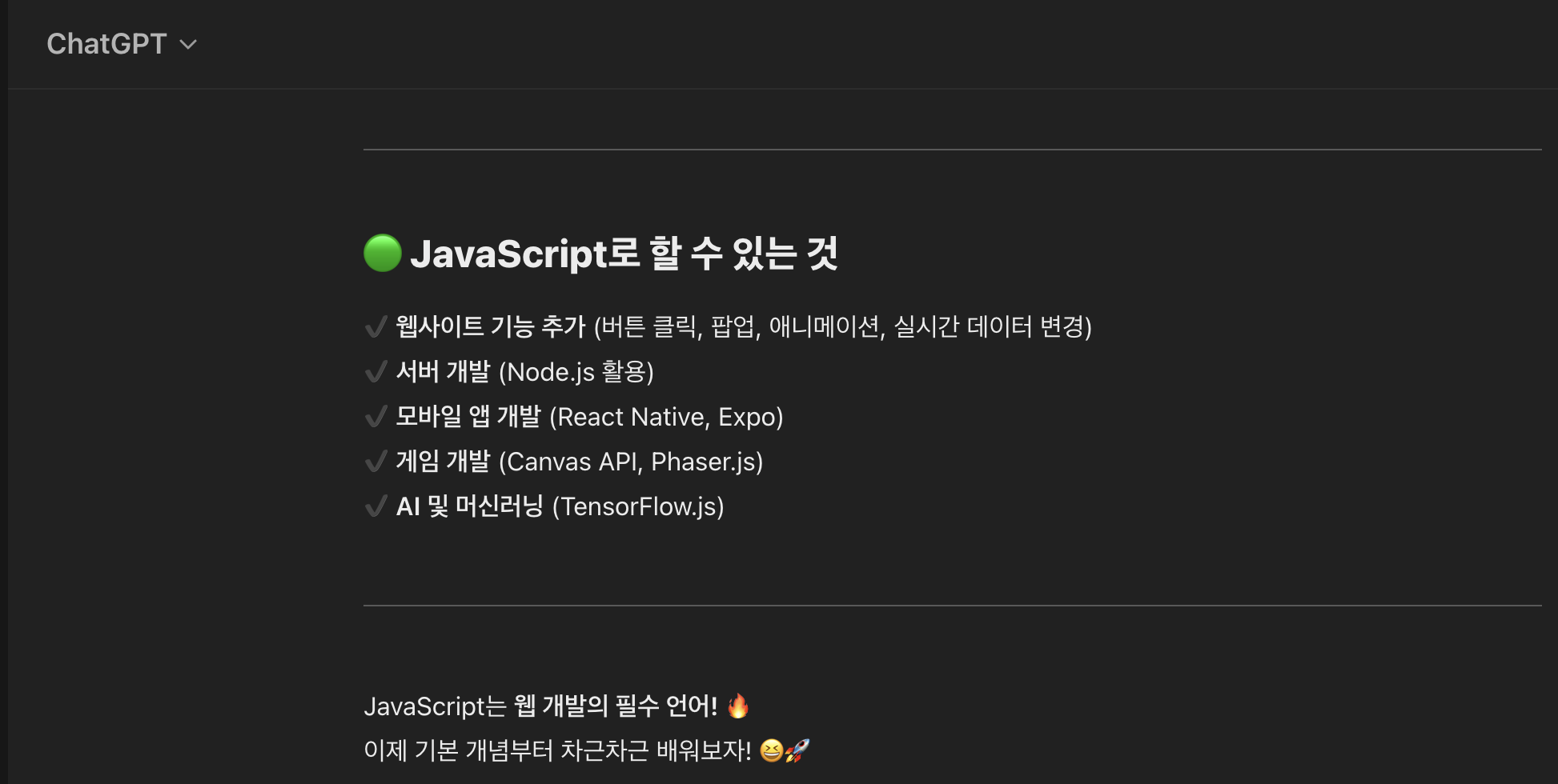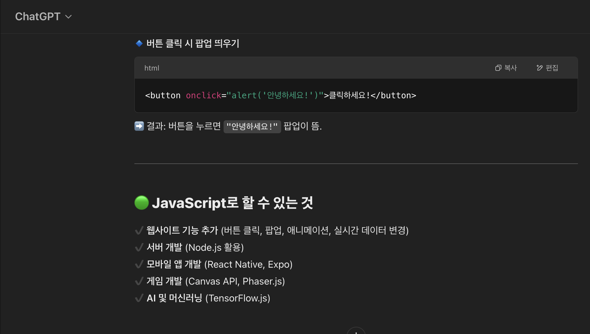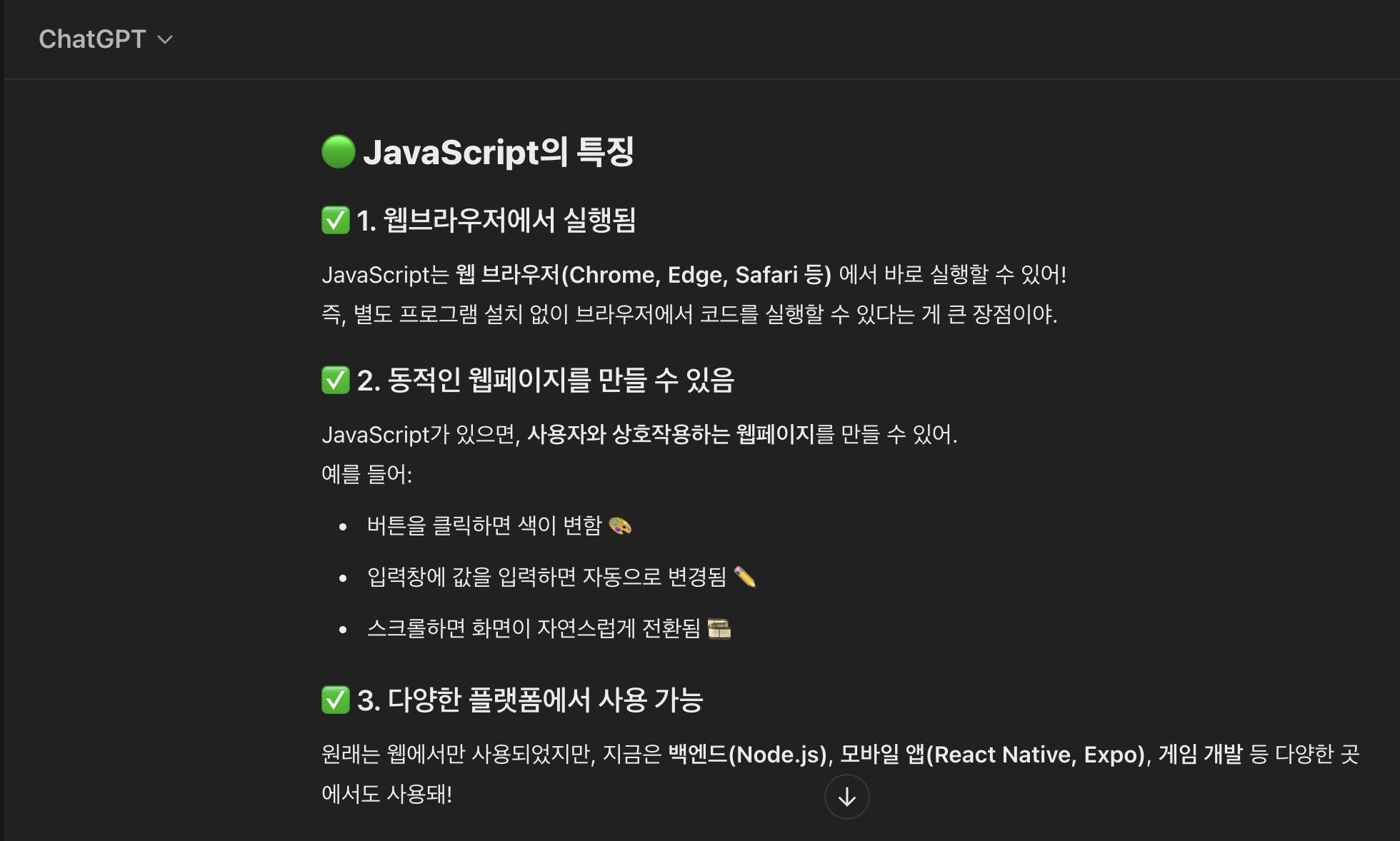 단순히 자바스크립트에 대해서 자세히 설명을 해달라고 했을 뿐인데
