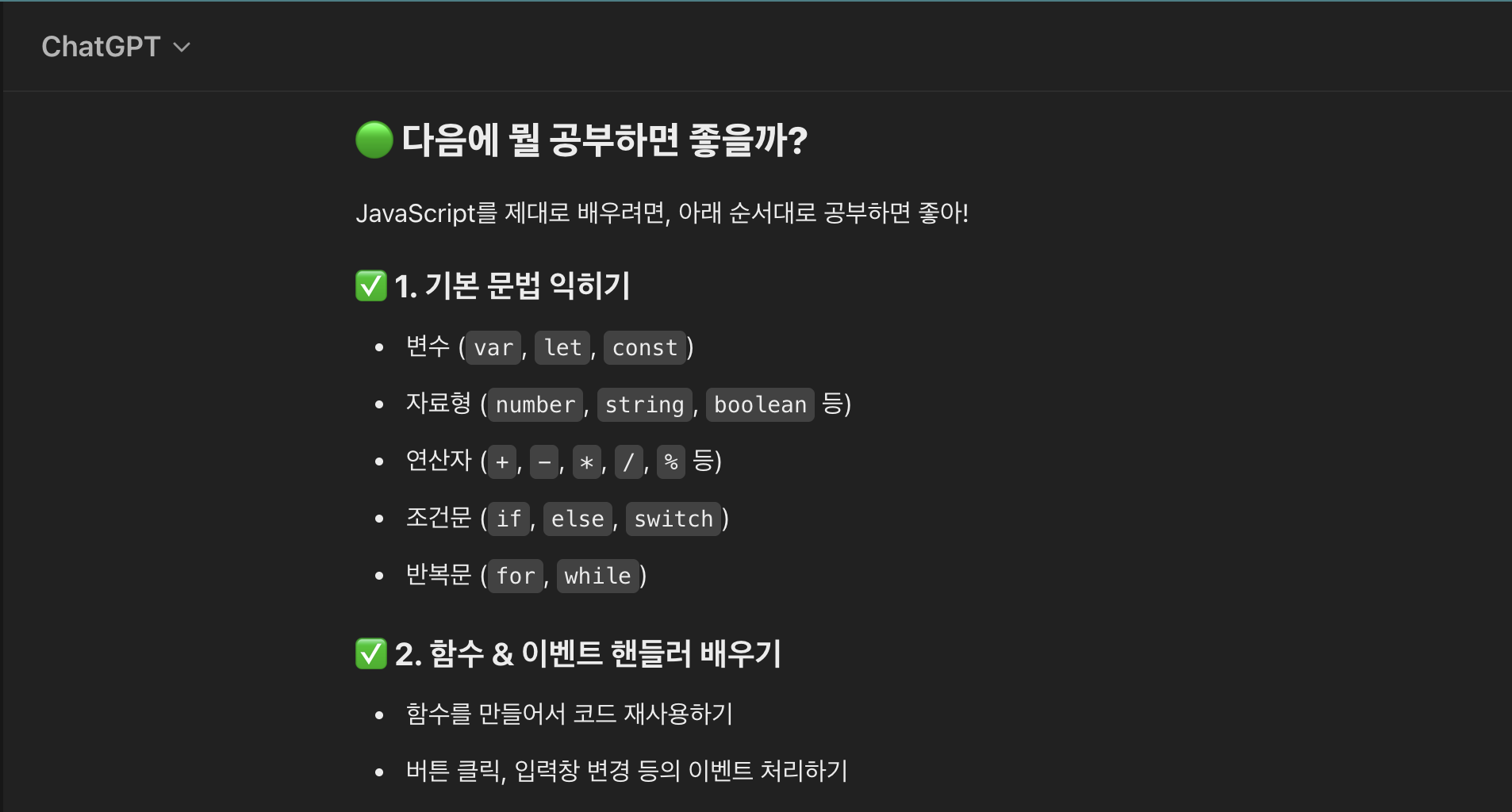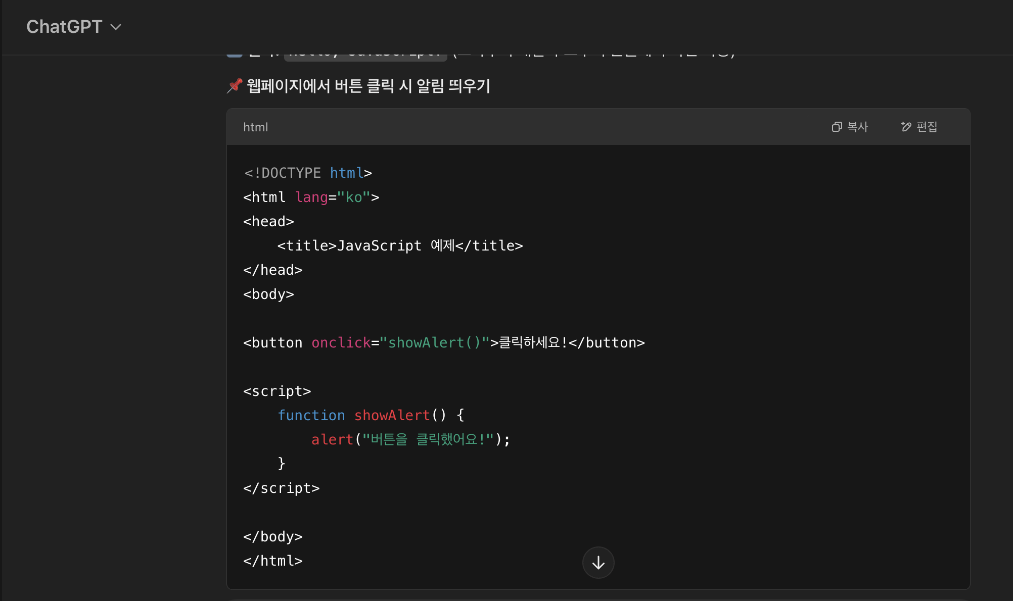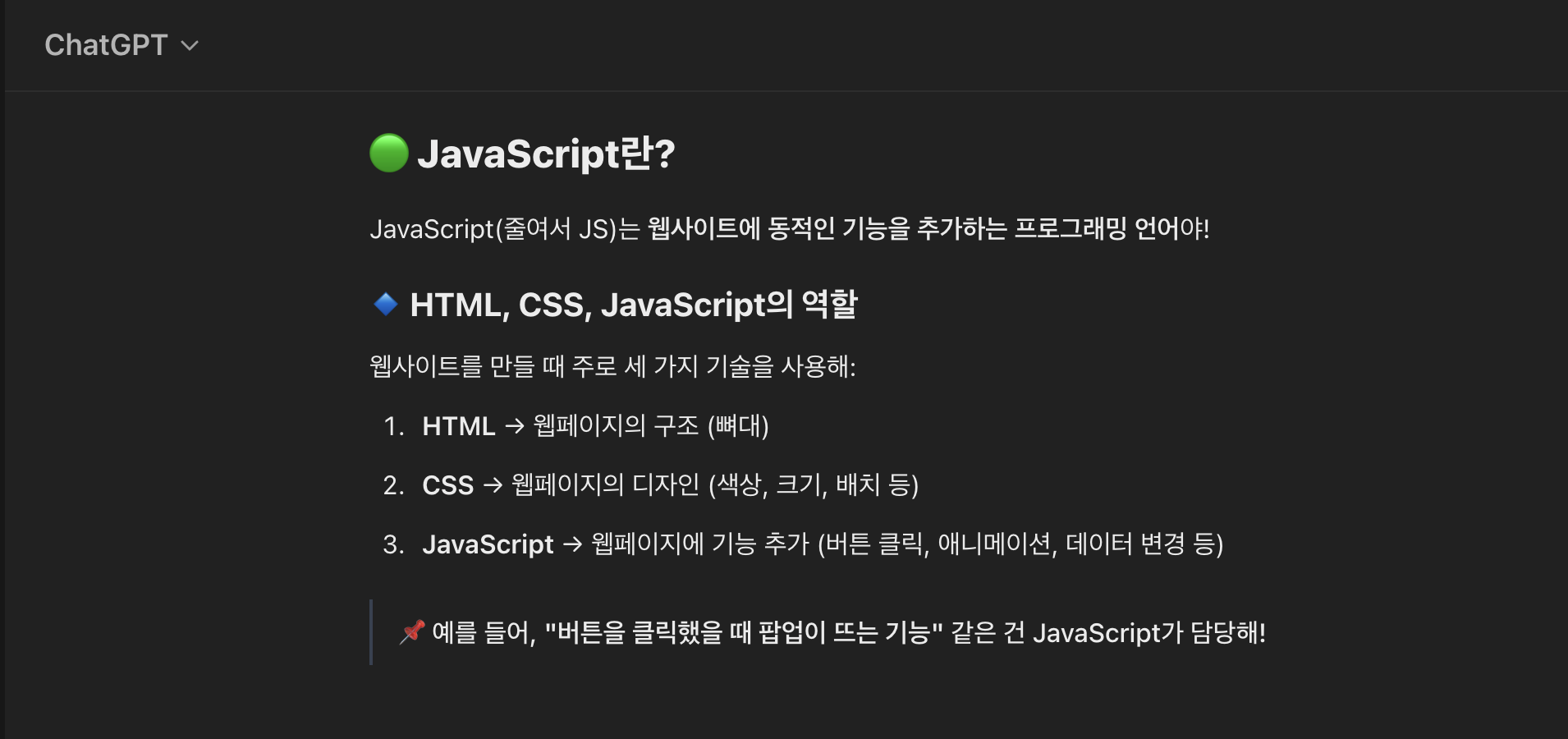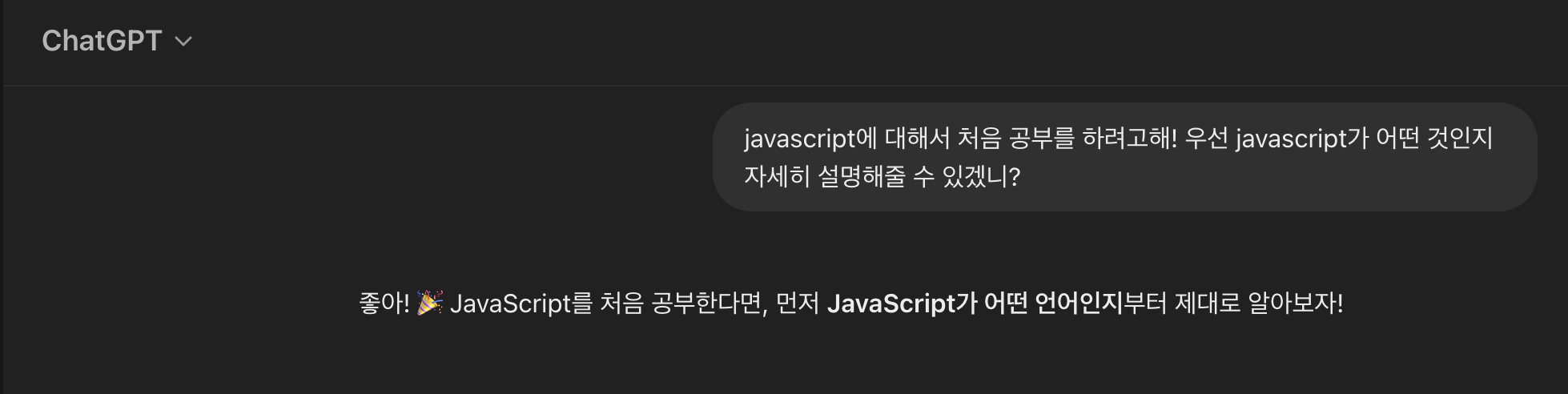 단순히 자바스크립트에 대해서 자세히 설명을 해달라고 했을 뿐인데