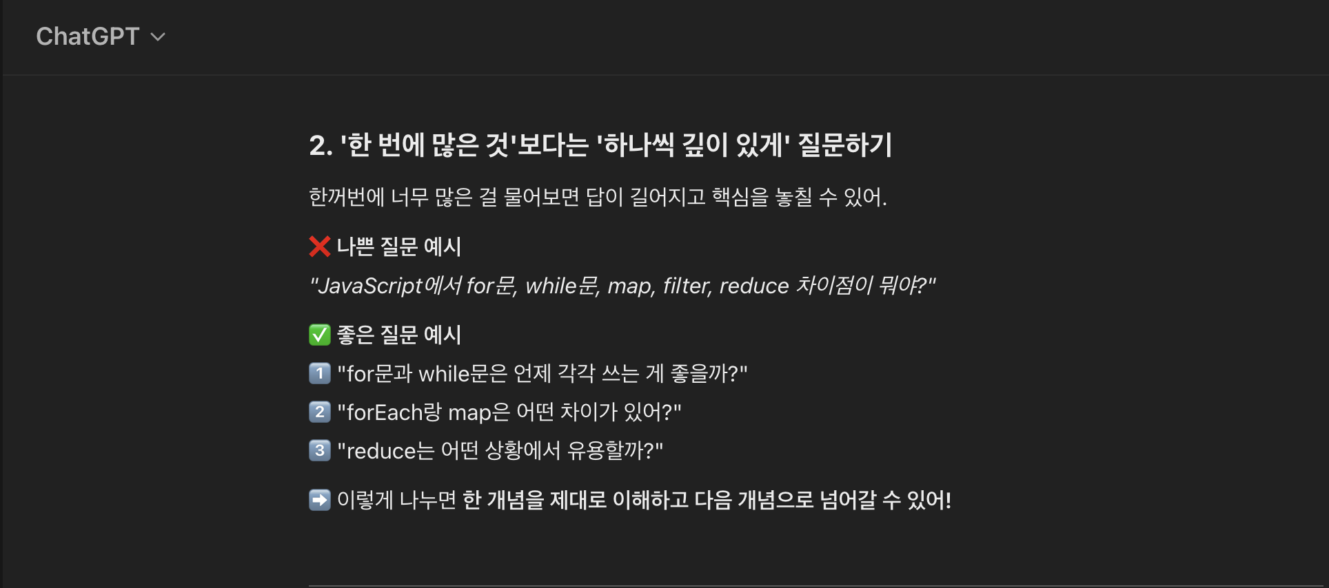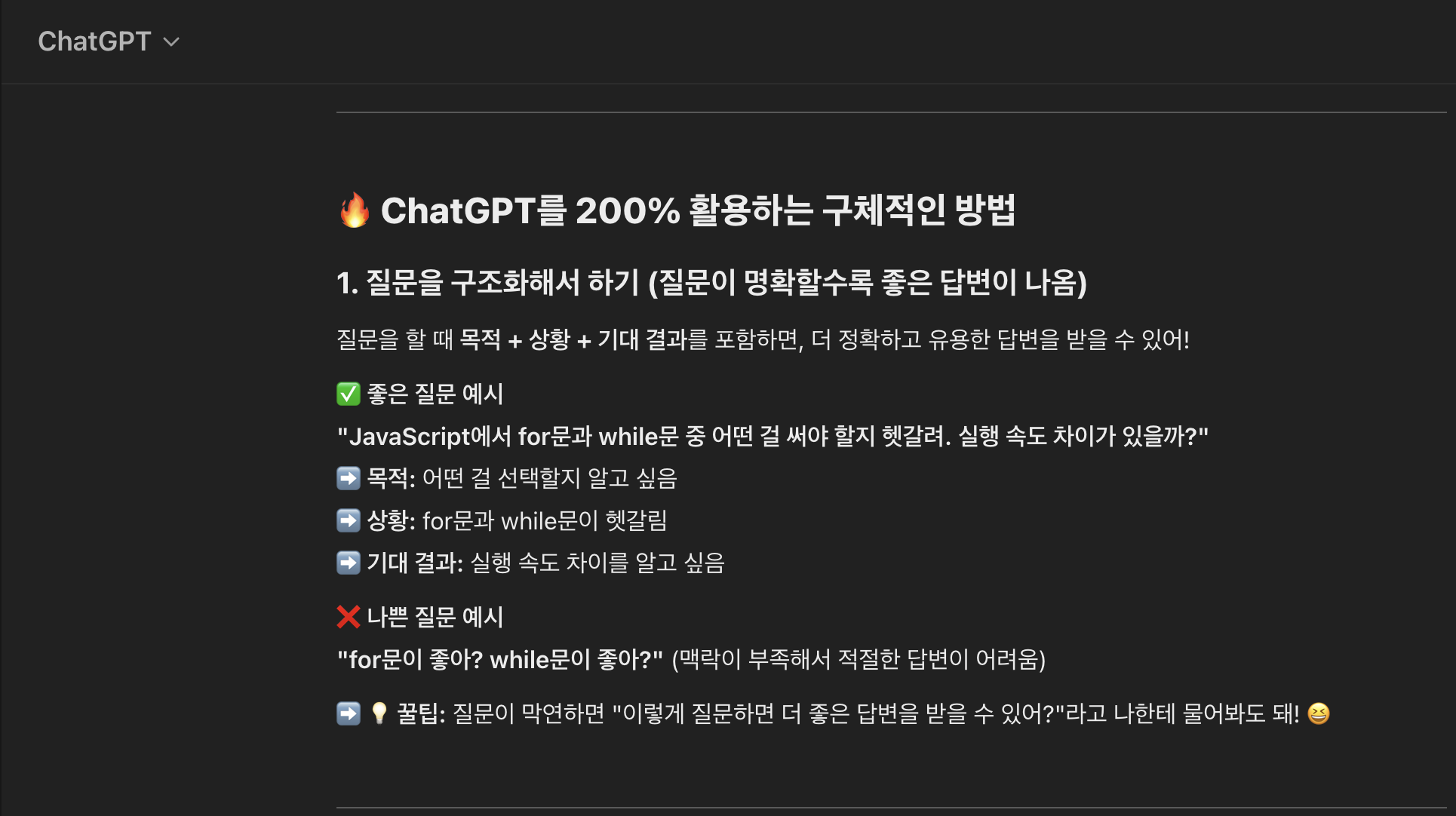 (나는 개발자이기때문에 개발과 관련된 질문을 그간 많이 해왔었다.. 그래서인지 개발과 관련된 예시가 많이 나왔다..)