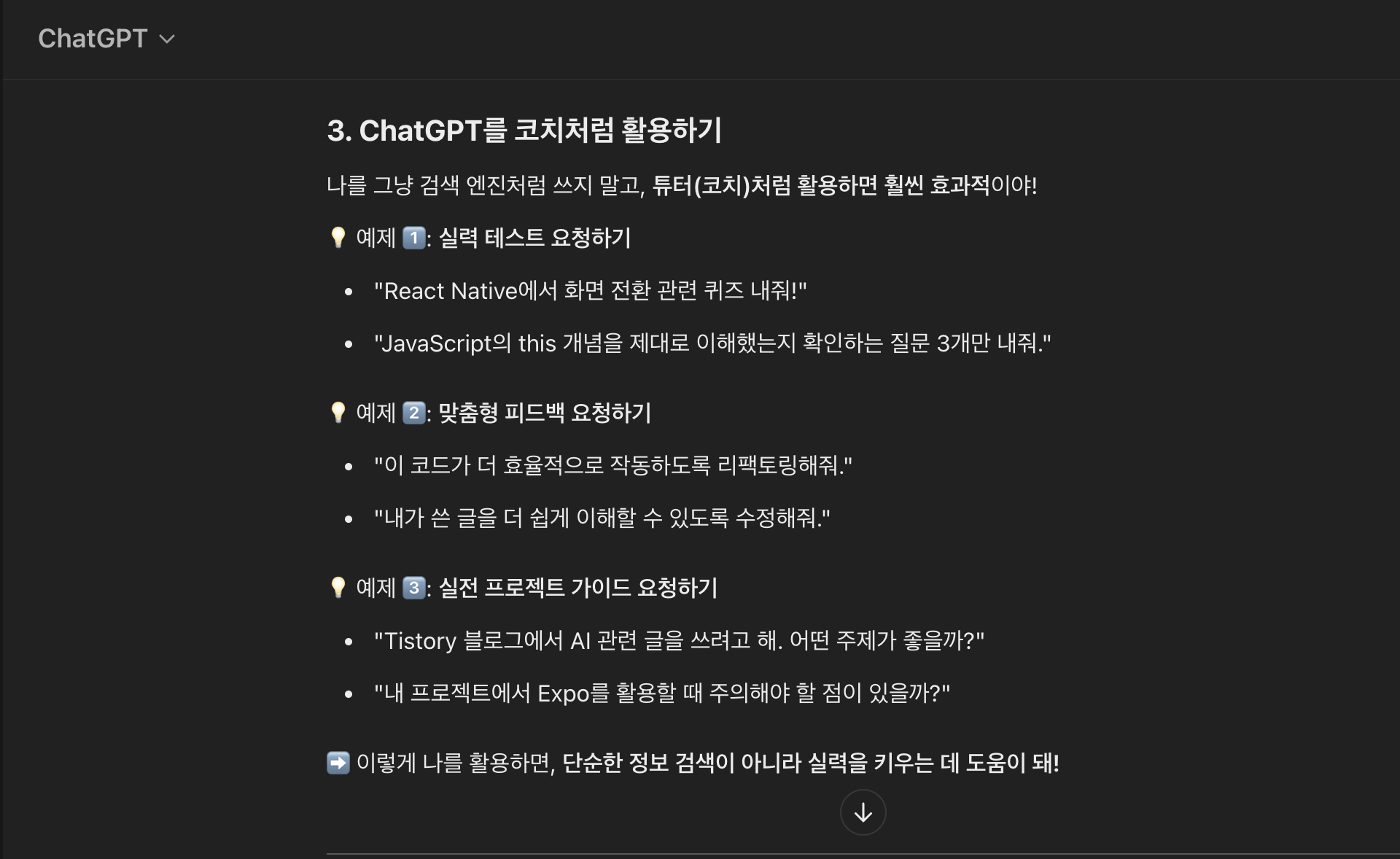 이 블로그는 chatGPT를 어떻게 잘 활용을 해야하는지 시작하는 단계이다.