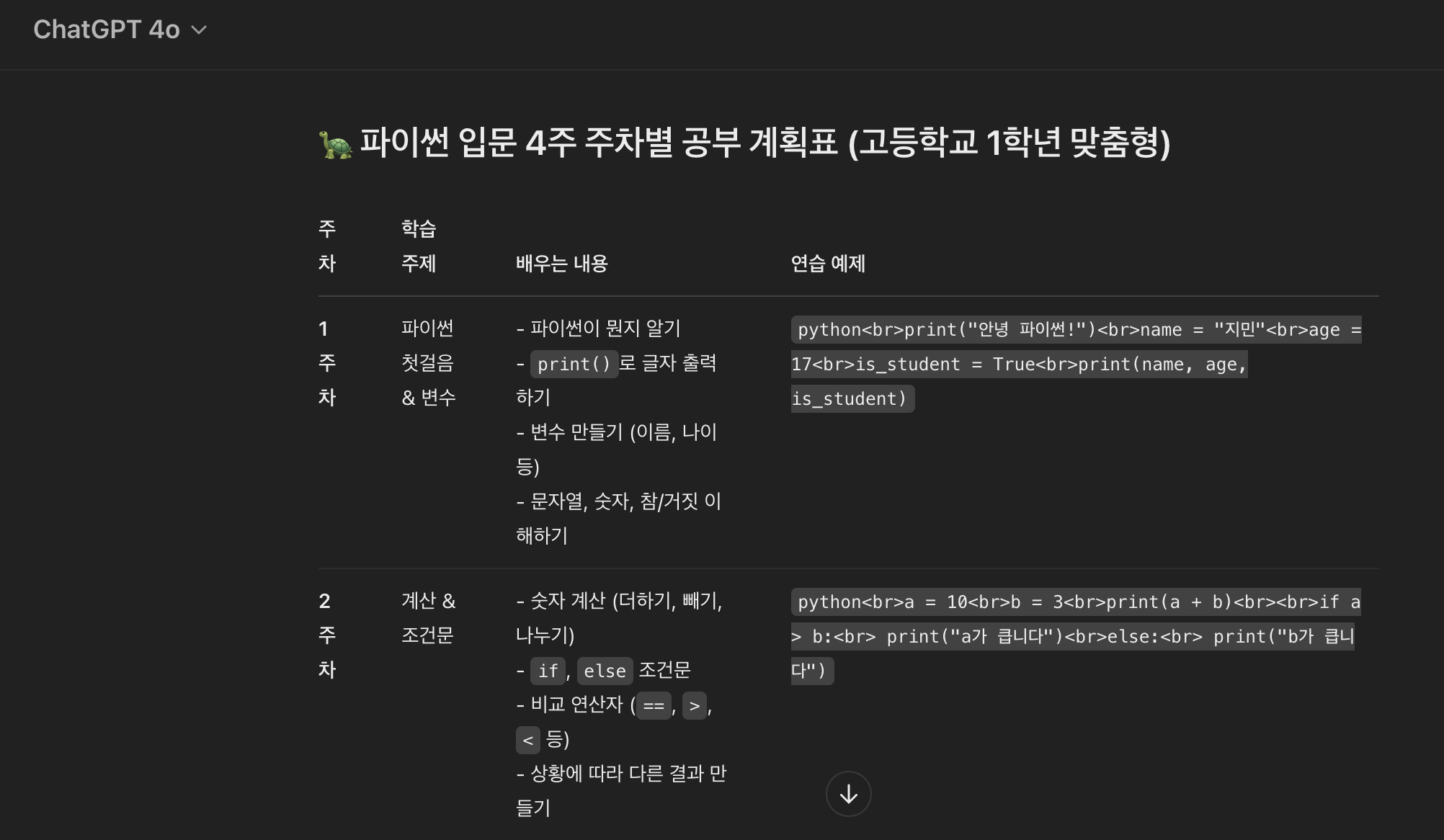 하지만, 이제는 챗지피티가 나의 계획표도 세워줄 수 있고 나는 이를 활용하여 공부를 하였다