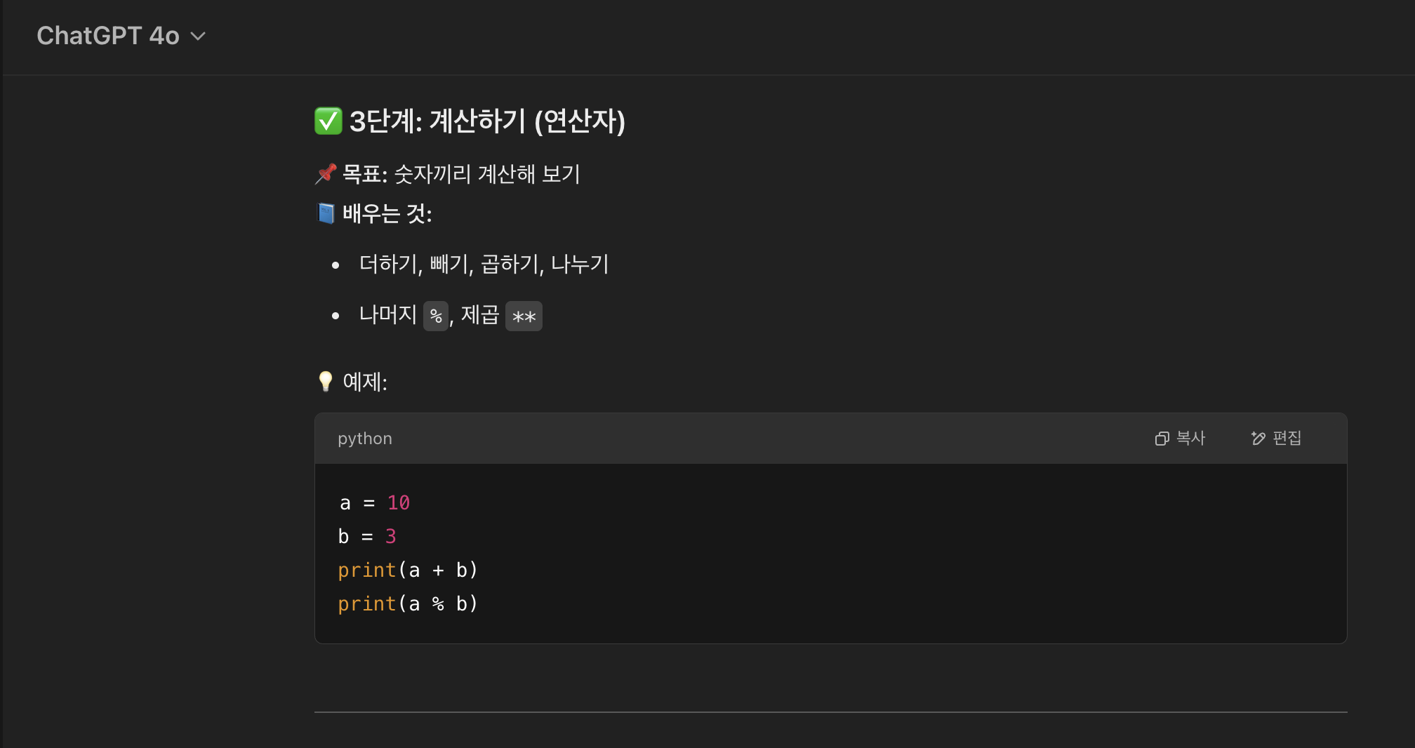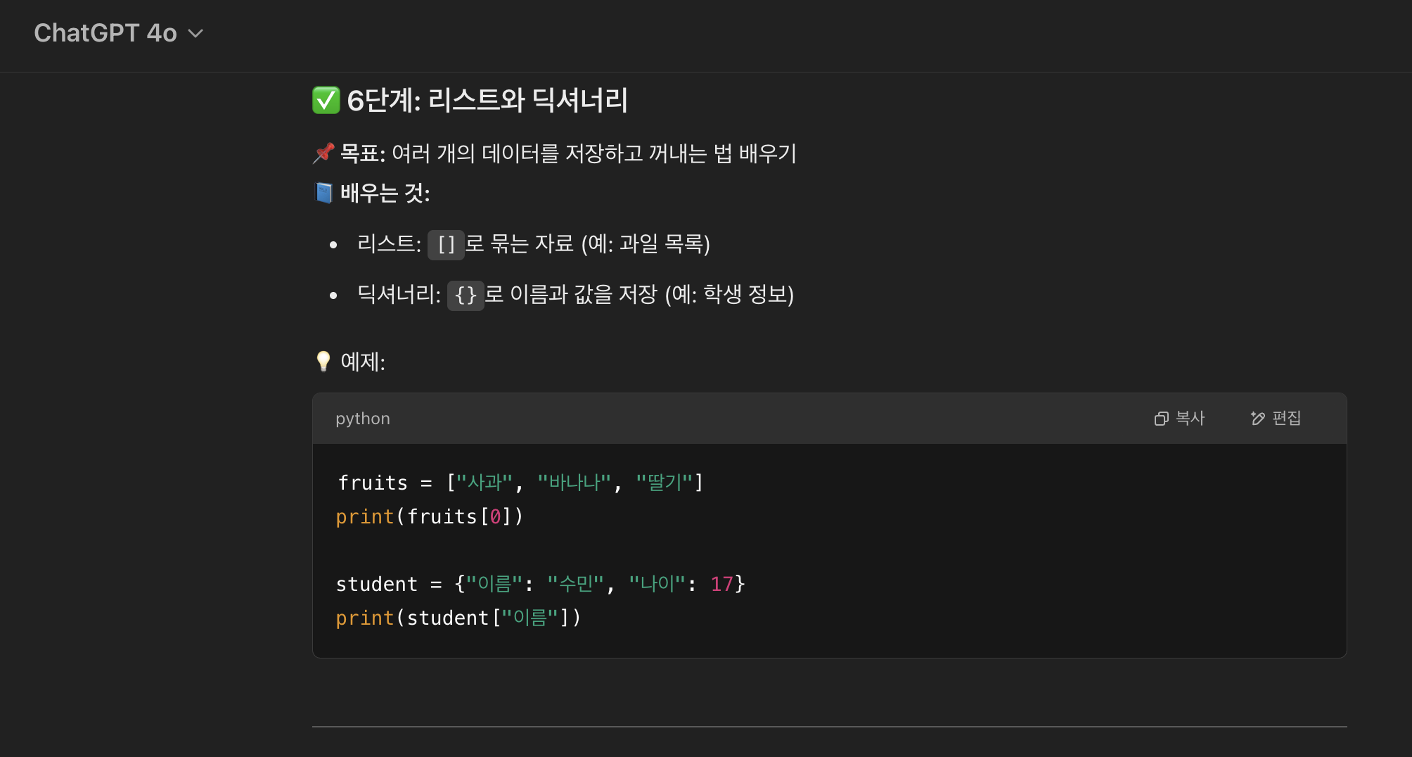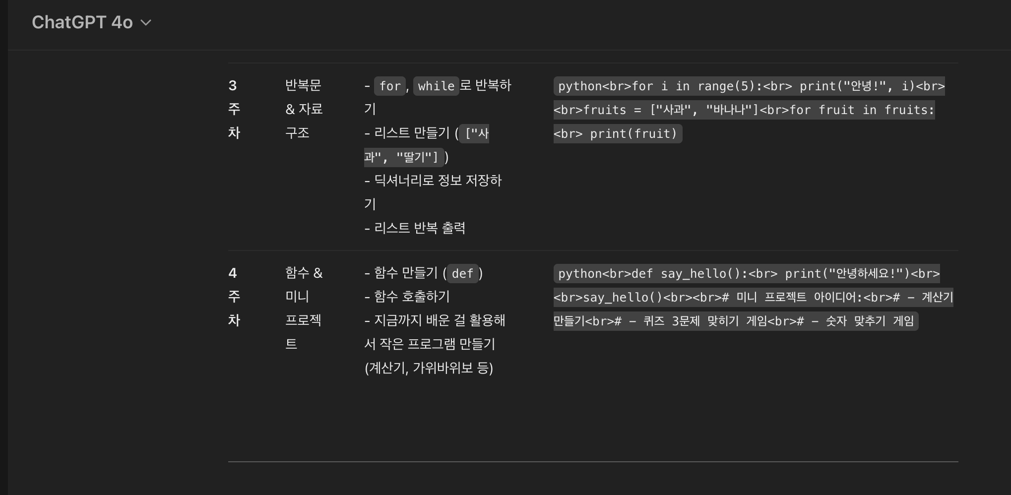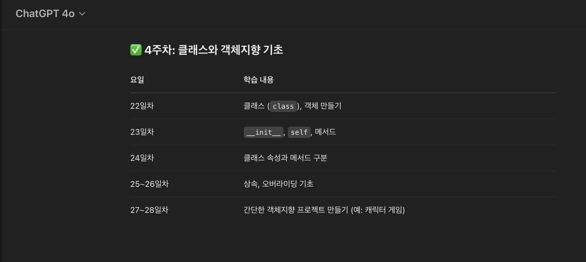 내가 개발자로서 파이썬을 처음 접하는 것인지, 개발을 처음 접하는 것인지부터 이해도와 나의 공부스타일을 제시해준다면
