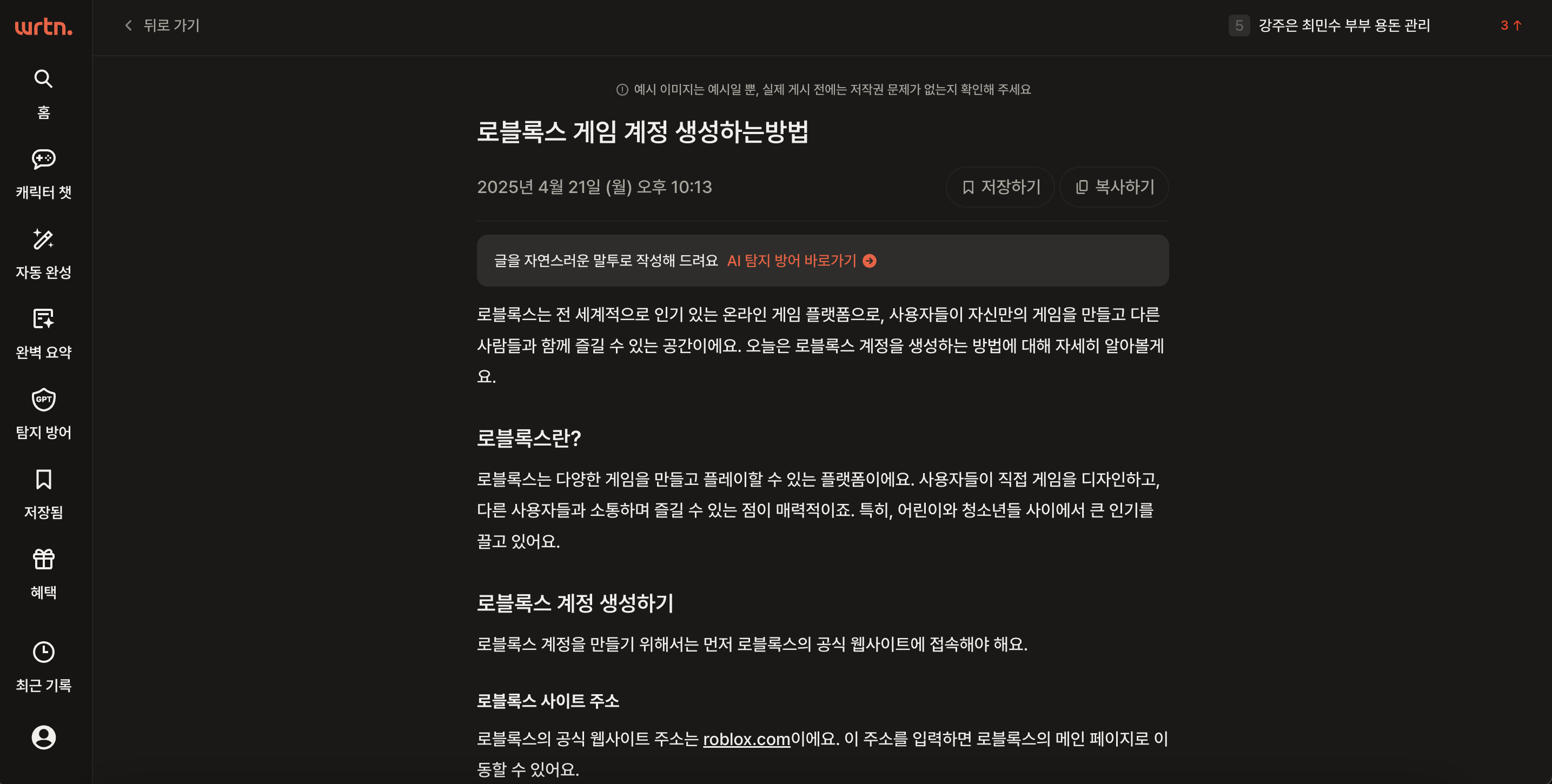- AI가 직접 생성한 것이 아닌 웹에서 검색해온 것이기 때문에 그대로 쓰면 저작권 문제가 될 수 있다