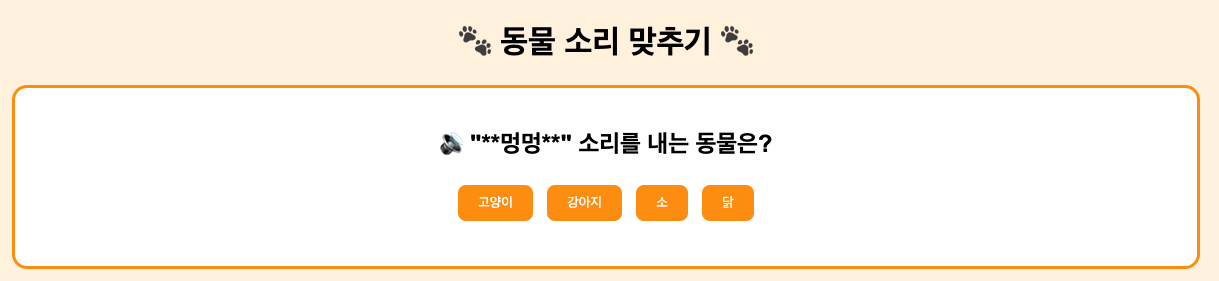<h1>🐾 동물 소리 맞추기 🐾</h1>